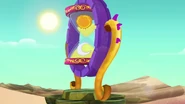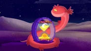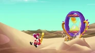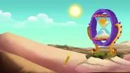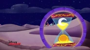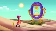 Jake and his crew soon learn from Marina that sift back and forth from night and day means something may be wrong with the Sands of Time. Once Jake and his crew reach the were about of they discover Sands of Time has been knock off its stand by Hook and his men Jake quickly rescue them from the sand serpent,Jake suggest they work together to restore Sands of Time to its stand. While Brightly and his firefly friend keep the the sand serpent distracted, the pirates restore the Sands of Time back to its stand. Captain Hook then attempts to swipe the sand, resulting in the serpent giving chase. Once Hook is atop of the now rolling Sands of Time, he falls into a chasm. Izzy quickly uses her pixie dust, rescuing Hook, the serpent and The Never Sands of Time from falling, Jake explains to the serpent that they were not thieves and only wanted to return the Sands of Time to their proper place.