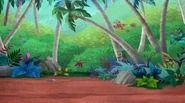 After Jane's falling out with Peter, Tinker Bell and the Lost Boys whom Jane endures the most the wilds and weather of the Never Land Jungle and is later approached by Captain Hook, who tricks her with a deal. He promises to take her home and lies that he won't harm Peter, and she agrees to help him find his treasure. He gives Jane a whistle to signal him when she locates it. Various parts of the jungle could be spotted during musical number So to Be One of Us.