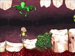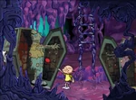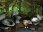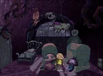 One day, Ned Needlemeyer, a 10-year old boy, arrives home from school just as a storm is coming. He finds out that his house is empty and finds a note left by his mother, telling him that herself and Ned's baby sister, Amy, had to pick his dad up from work and should be home by 7 p.m. Ned then decides to spend his free time eating junk food and playing video games. Ned continues to enjoy himself until a lightning strike causes a power outage, turning Ned's video game off, ending his enjoyment. He hears the phone ring upstairs and goes to answer it, but there is no one at the other line. Ned then sees a shadow of a tree and confuses it for a monster. He tries to run away, but the phone cord trips Ned and he thinks the monster has got him. He soon realizes that it was just his fear getting the best of him and and decides to go to bed. Just as Ned walks to his room, five shadows follow him and sink into the quilt on his bed. Just as Ned falls asleep, a pair of green monster hands grab hold of him and his blanket as his room breaks apart and falls into empty space. The hands then spiral the blanket around, sending Ned falling down a twisted void. As Ned is falling, the shadows who were following him introduce themselves, the Graveyard shadow, the Medical Shadow, the School Shadow, the Attic, Basement, and Beyond Shadow and the Bathroom Shadow. When Ned falls out of the void, he lands on a giant, gloomy version of his bed called the Quilt, which acts as the main HUB for the game. It contains passageways to five realms: