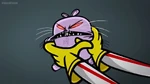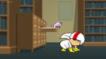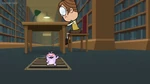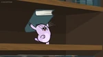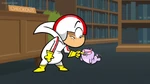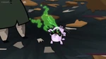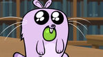 When Kick feeds it a piece of candy, he finds out too late that he shouldn't have done so. When he goes to retrieve it, he discovers it has turned feral. Its teeth and claws have sharpened and its eyes have turned red. From there, things only get worse when the Nuzzlet starts causing mischief. It bites when Kick gets his finger near it. It can now lift and move objects many times its size, and easily tosses Kick around like a rag doll. After an array of making trouble for Kick, the Nuzzlet gobbles down an entire jarful of candy. With a full belly, it suddenly becomes unstable and explodes, devastating the library.