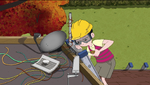 The next day, Milo is on roof of his house installing a new asteroid warning system. In order to keep Milo busy, Melissa, pretending she sprained her arm, asks him to pick up and deliver a package for her dad. Milo gladly accepts and heads out on his bike. To make sure he does not show up too early for the party, Melissa calls Elliot that Milo is riding a bike that is unsafe and is need of inspection. With Milo kept busy, Melissa, Zack, Amanda, the Murphys and everyone invited helps get everything set for Milo's surprise party. They also bring along a couple things for everyone's safety, like mattresses, extra crash helmets, fire-retardant netting, radiation screens, and glow in the dark T-short. Pretty soon they had the go-kart park Murphy's Law proof and the party is set. All that was left now was the guest of honor.