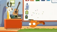 This is the second time the fourth wall was broken when Kiff started dancing in the same way in the theme song with even the song itself playing before Kiff stopped in the air while she was flopping like a fish. The first was "Soup Opera".