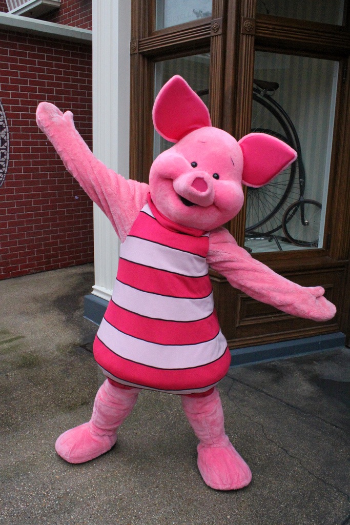 Piglet, posing for a photo at one of the Disney parks.