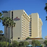 The hotel complex has a high-rise guest room with 481 rooms, including 25 suites. At the tower's base are a lobby, restaurants, a gift shop, recreational facilities including a fitness center, over 30,000 square feet (3,000 m2) for a meeting space, and a 7,250-square-foot (670 m2) ballroom. There is also an outdoor swimming pool and a Finding Nemo themed water slide called Crush's Surfin' Slide located on the third floor.