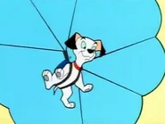 Cadpig informs Lucky on this, and as they try to get him out the Air Dales suit, they accidentally turn on the jet pack, sending Lucky flying through the air and onto Cecil's lap during Spot's audition (who is then crushed by the jet pack). Seeing how natural he is, Cecil B. De Vil casts Lucky as the spokes pup.