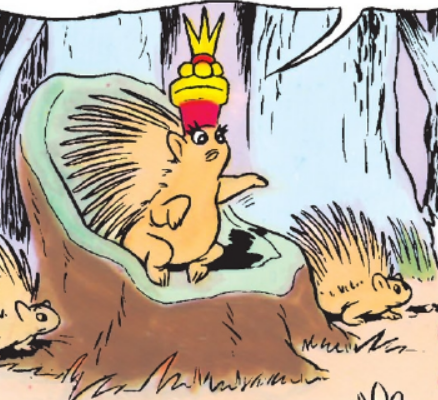 After Snow White and Prince Charming are captured by the evil Witch of Potions, the Seven Dwarfs approach the queen of all hedgehogs, Yunaka, for assistance. Queen Yunaka agrees, and gifts the Dwarfs with hundreds of quills that they could use as arrows against the Witch's forces. During the battle, the itchy quills force the Witch of Potions to flee from her castle, allowing King Claw and his minions to kill her.