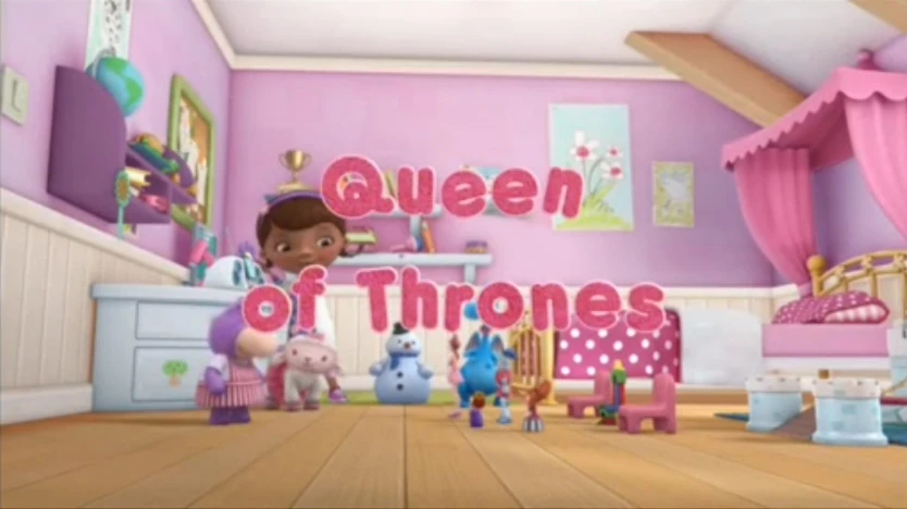 "Queen of Thrones" is the second segment of the sixty-eighth episode of Doc McStuffins. It premiered on August 21, 2015 alongside "Stuffy and Squibbles", and is the second segment of the seventh episode in the third season.