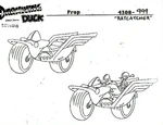 Negaduck owns an alternate version of the ratcatcher. Like Darkwing and Negaduck, the alternate Ratcatcher looks exactly like the original Ratcatcher, but with a different color scheme. It has a yellow front fender, red headlights, a black body and windshield, red exhaust pipes, and a black and red sidecar.