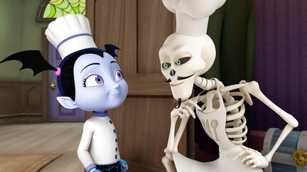 Vampirina and Gregoria know that Bones is acting strange, and Edgar decides to record Vampirina and Poppy making apple pie à la moat. They mention the recipe, but Demi forgets it, although he's eaten it lots of times before. Demi sets loose Bones' whisk, which flies all over the place. Poppy goes to get the cinnamon, setting loose the carrots again. Edgar stops the recording, and Demi and Gregoria know that Bones doesn't want anyone using his secret recipes. Vampirina and Poppy realize it. Edgar appears, and Vampirina tells him that the recipes are Chef Remy originals before heading to Bones.