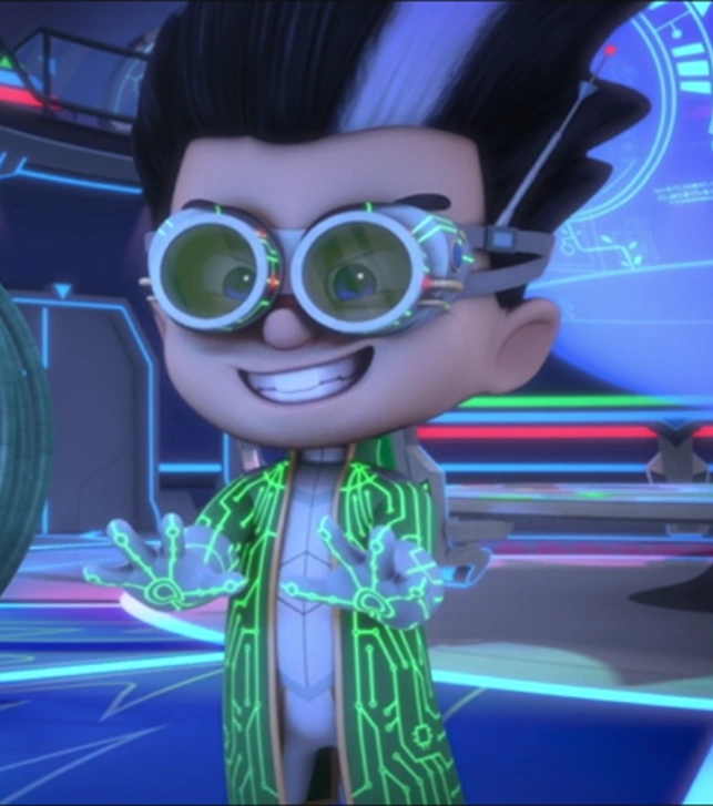 Not much is known about Romeo's day-to-day life, other than that he knows the true identities of the PJ Masks. He also plays as the true antagonist of the show. A marvel of mechanical mischief, Romeo is so wrapped up in his own genius as he attempts to launch his latest invention to capture the PJ Masks and take over the world! With his mobile laboratory and many a gadget, PJ Masks have their work cut out but with teamwork and cooperation, Romeo's genius is no match for the PJ Masks!