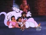 Sadira, Jasmine, Abu, and Iago as Flies.