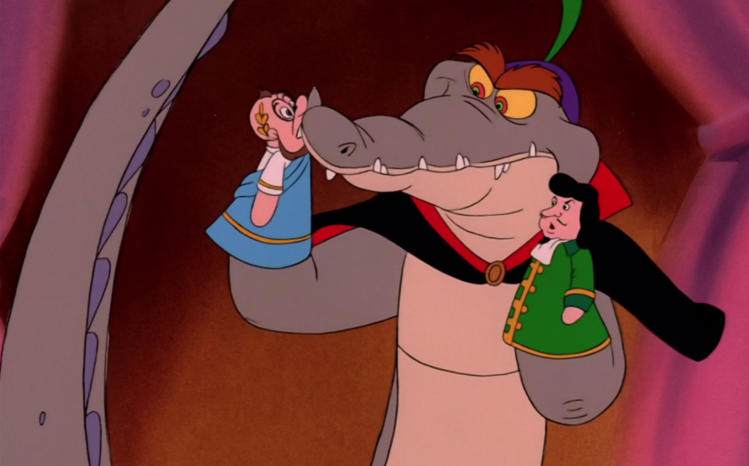 Later, he tried to get hold of Clarence again. Succeeding this time, he initially plans to eat him, but ultimately decides to spare his life instead, stating that it would be unwise to perform in his place on a full stomach. He trapped Clarence in his dressing room, put on his costume, and entered the stage, but when both the cast and the audience realized that the star was an alligator, they tried to flee in panic. Outraged by all these "critics", Sewernose threatened to eat them all. He could only be calmed down by Chip and Dale taking over parts in the opera, causing Sewernose to start acting again. He was later flushed back into the sewers.