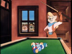 When Wendell and Cleghorn first happen upon the Sea Duck in their Broncos, Wendell tells Baloo to pull over. When Baloo fails to comply, Wendell takes out one of the plane's engines with a nugget of highly volatile urgonium. Cleghorn, as the judge, charges Baloo, Kit, and Wildcat with speeding, littering, and resisting arrest over the city limits. That's when Clementine Clevenger cuts in, telling Cleghorn that he's just a worker of Khan Industries, and he's made a habit of kidnapping people to work as miners.