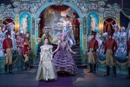 After Sugar Plum is transformed into a lifeless porcelain via Engine, Shiver, Hawthorne, and Mother Ginger praise Clara for saving the Four Realms just as Mother Ginger sends Phillip to return Clara to the Christmas Tree Forest and return to his new post there.