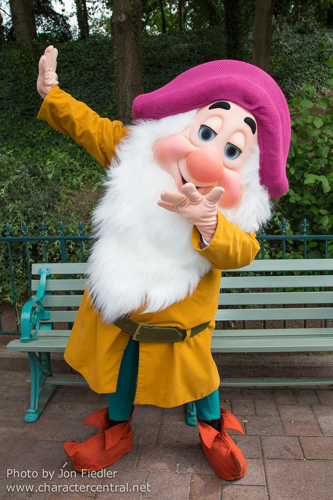 Sleepy is a rare character when it comes to meet-and-greet sessions, but even so, he and the other dwarfs are commonly utilized in the Disney theme parks. He wears an amber outfit with a fuchsia hat, green pants, and orange shoes.