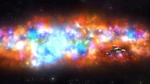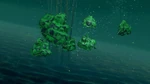 After Leo opens the door, the Callistos are shocked to see a large, green creature whose legs are connected to every system on the ship. Miles wonders if it has always been there, and Loretta wonders how it got on the ship. The Callistos try to disconnect the legs, which then kick the Callistos out of the room and lock the door. Loretta's Bracelex has no idea what that creature is. M.E.R.C. shows that the creature is actually Miles' rock that he collected a short time ago, and that it is alive. Phoebe then sees that they are passing by the same stars they went through a few hours ago, and that the Stellosphere is heading back towards Kepler Planet 63973-B. Miles assumes that the creature is trying to go home. There is one problem with that: the course the ship is taking towards that planet is one that goes through the exhaust cloud. M.E.R.C. demonstrates swimming, which gives Miles an idea: when he found the fuzzball, it looked like a rock sitting in water, and that it will shrink into a rock if it gets wet. Since the engine room doors are closed, Leo finds another way there: the emergency hatch outside next to the bio-garden, and the water supply.