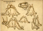 Stegosaurus was originally meant to appear in early drafts of The Good Dinosaur, but were eventually cut in the final film. However, the species was mentioned by Nash, where he tells his story about how he got his scars from thirteen outlaw Steggos.