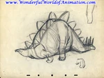 In Fantasia, Stegosaurus was depicted as a sluggish animal, with its legs sprawling and tail dragging along the ground. In real life, Stegosaurus had its legs tucked underneath its body and its tail held far off the ground.