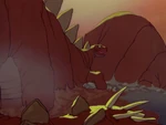 Later, other Stegosaurus appear in the group of dinosaurs marching through the drought. Some are trapped in a muddy pit with Apatosaurus and Diplodocus then they are killed by heat exhaustion and attacked by a group of desperately hungry Ceratosaurus.
