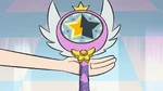 A new unicorn, named Vincenzo, repairs the destroyed wand, and then Mr. and Mrs. Diaz show up with the army of Mewni, who contacted Star's parents with the magic mirror. Moon Butterfly says that although she's always angry at Star, she is still glad that she is safe, and permits her to run after Mr. and Mrs. Diaz as they ride the horses. The king and queen contact Glossaryck, who says that the wand can be fully repaired if all its pieces remain. Half of the star faceplate of the wand is still in the monsters' realm.