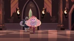 They enter Ludo's castle where Toffee has Marco imprisoned in a near-impenetrable glass box. Star blasts Toffee's left arm off and fights Ludo's army, then enters a more powerful state and destroys the glass box, however, the box regenerates before Marco can escape. Toffee regenerates his lost arm and threatens to crush Marco with the box. Star is forced to give Toffee her wand. Ludo tries to take it but is eaten by Big Chicken. Toffee reveals he does not want Star to give him the wand; he wants her to destroy it. Star reluctantly uses the Whispering Spell to destroy her wand. The unicorn powering the wand briefly appears as a spirit in death.