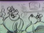 Swabbies was the second in what was supposed to be a number of half-hour projects to get the classic Disney characters back in the spotlight. The first was the ill-fated Sport Goofy in Soccermania, caught in the midst of studio regime change. This was the very first Disney Special Projects Unit and was set up off the lot to cut costs and train new animation talent. It was a bold stroke at the time, using Acme-punched paper rather than Disney punched paper (so that more people could use existing home set-ups to freelance on it). Everything was done on Acme 12 field rather than Disney's much larger paper (which roughly translated to an Acme 16 field) to save line mileage. Paints were off-the-shelf Cartoon Color Cel Vinyl rather than the Disney Studio's custom mixed paints. It also inadvertently turned out to be a great training ground for the new bruising method of studio politics as practiced by some of the masters of full contact studio politics, Jeffrey Katzenberg and Michael Eisner. Needless to say, Special Projects did not fare well under such heavy hands.