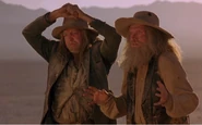 Daniel then returns to the farm and admits that the stories were true and their land is important. Paul with his blue ox Babe, and John with his mule Cold Molasses, say goodbye to Daniel and disappear afterwards. Pecos leaves his horse, Widow-Maker to Daniel and twirls his lasso at a twister for his departure.
