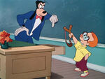 As the narrator explains, educating children is one of the most important things today and the heroic man who takes on this role is "the school teacher" (Goofy, naturally).