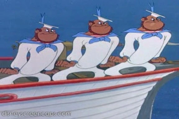 Tetti-Tatti's Sailors are minor characters and Tetti-Tatti's ex-minions (at the end) from Disney's 1946 animated short The Whale Who Wanted To Sing At the Met, a segment of the 1946 package film Make Mine Music.