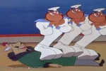 Tetti-Tatti's sailors are first seen when they notice Willie singing opera with their ship standing on top of his head, while Whitey gestures to Tetti-Tatti to take a look at Willie who is singing, just before putting the ship onto the surface of the ocean. All of a sudden, the sailors exit the cabin to see Willie while Tetti-Tatti commands them to fire a harpoon at the whale. However, Willie continues to sing and moves at various spots of the ocean, leaving the sailors confused and instead of shooting him, they become distracted upon listening to Willie singing opera. An impatient Tetti-Tatti orders his sailors to do his task, but they all silence him as they continue to hear Willie singing. After Willie finishes singing, Tetti-Tatti's sailors are impressed for his performance as they and Whitey cheer for him.