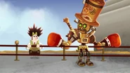 At the boxing match, which is hovering midair via propellers, Boone and Larry reveal their automatons, who are deactivated and on strange poses, astonishing the spectators. Boone activates automaton Penn via wind-up as Penn tells Boone how weird he felt not being built, so Boone tells him he built him. Larry activates automaton Rippen via a boiler, causing Rippen to cough, so he asks him why did he designed him like this, so Larry responds him saying it's more realistic. DiReginald tells that the automaton who punches the other's head off wins and starts the match.