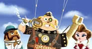 Boone zaps as a spiky-haired inventor in a lab that reminds him of his grandma's garage. Boone sees what appears to be a music box nearby, so he winds the machine up, revealing Sashi as the machine. Sashi then tells the missions; they are in the city of Retrofuturopolis, where Boone is an inventor while Sashi is a mechano-brain engine. Boone has to build an automaton to fight an evil inventor's automaton in a boxing match. If the evil inventor's automaton wins, it will get mass produced so that they can takr over the city. Boone asks her where is Penn, so Sashi responds to him by telling him that Penn is the automaton he has to build, shocking Boone. Mayor DiReginald Hindenburg brings Larry, being the evil inventor, to his lab and asks him if he could build his automaton by his side before flying out of the lab using his balloon. Sashi tries to tell Boone he can't let Larry in his lab before her power runs out and deactivates.