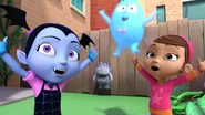 After the slime is ready, Edgar tells Oxana and Boris about Kiwi repeating everything she heard. He states that he'll get it all on camera. Kiwi then flies away. As Boris keeps an eye on Edgar, Oxana gives the slime to Vampirina so Gregoria can be freed. However, the slime goes all over Gregoria. Vampirina, Poppy, Demi, and Oxana try to pull Gregoria free to no avail. Kiwi hears about Demi calling a troll as he continues to be chased. Wolfie joins in. Edgar thinks the gargoyle and the troll are outside, but Boris doesn't think so. However, Edgar hears it, and Kiwi follows it upstairs.