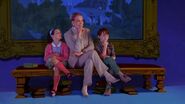 Unfortunately, this includes his wife, the Queen (Sarah Ferguson, Duchess of York). The cat and the King challenge each other to three questions each: if the Cat wins, she gets the kingdom but if the King wins, he will become the smartest man in the universe. The Cat wins all her questions whilst the King wins none. When the King tells them he does not know who he is anymore, the Cat shows an image of him dancing with the Queen. She declines her prize and is given a brooch as a token of thanks by the Queen. The children and Andrews return to the park entrance, where Andrews denies that she took them into the painting, as she did in the film.