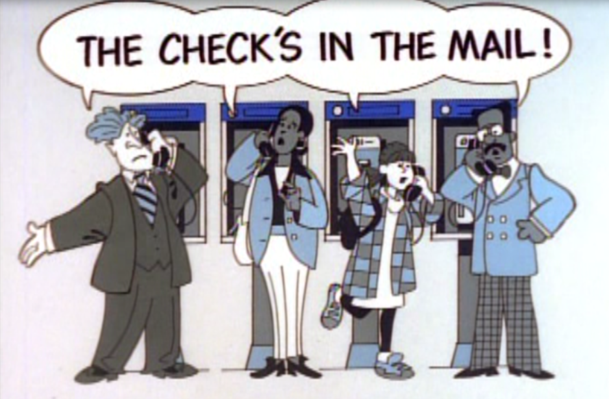 Now you may wonder what happens when you send a check to someone, and how it gets back to your bank. Well, that someone deposits your check into their account and then, through an electronic flow of digital information, your check is cleared by a central bank and comes back to your bank where, at that point, the amount is deducted from your account and paid over to theirs. So it's obvious that you've got to keep enough money in your checking account to stay in the black. Otherwise, you'll write a "hot check" and that sucker's gonna bounce -- and that's illegal!