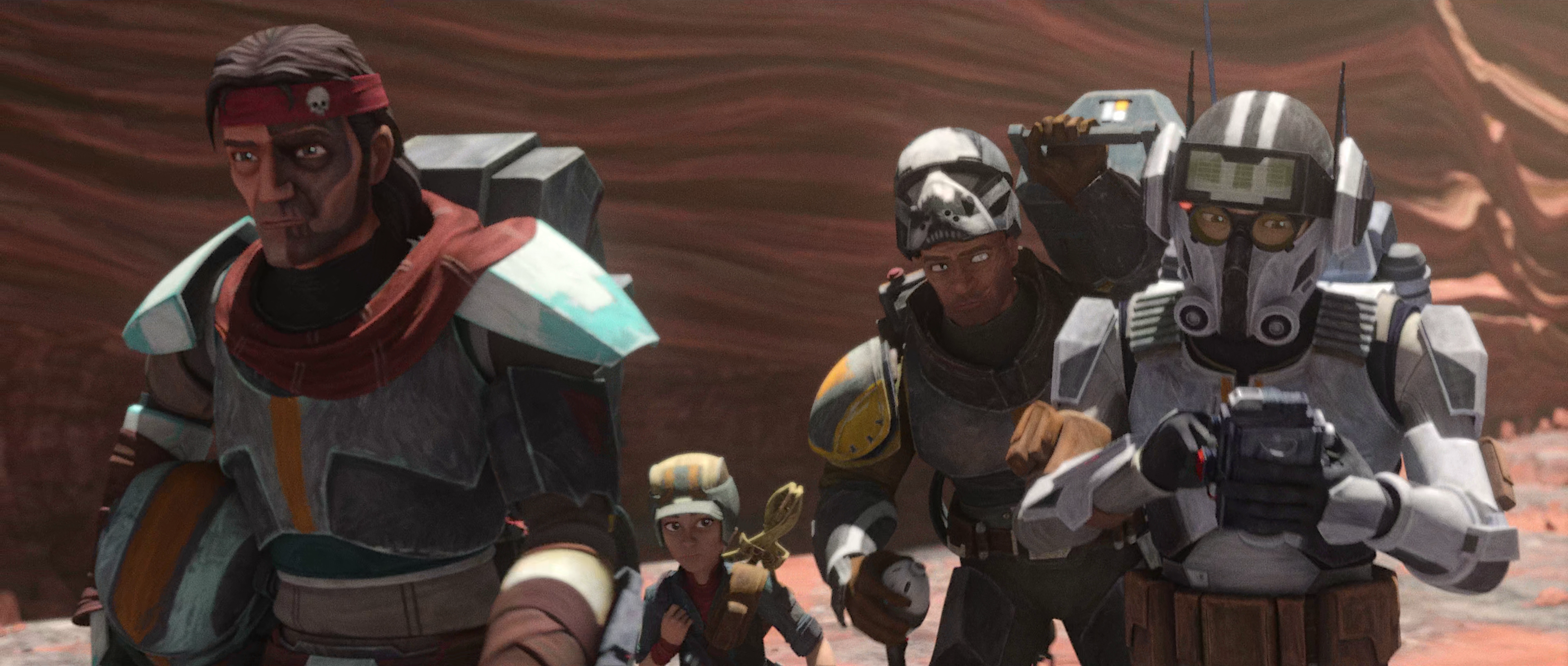 Cid sends the Bad Batch to extract some ipsium mineral from a mine she recently purchased, but during the expedition, their ship is stolen. Forced to trek towards a spaceport, they are buried inside another mine when their recovered ipsium is detonated by a lightning storm. Having trouble dealing with the recent sudden turnabouts, Omega discovers an ipsium vein, but while trying to harvest it, she and Tech get separated from the others and have a talk about adapting to changes in life before they find an alternative way out. They find the spaceport abandoned, but manage to contact Cid, who grudgingly agrees to pick them up in a few days.