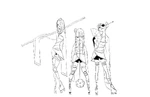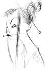 In most concept art of them, they are shown to have a punk, geisha-like style. In clothing, hair style with hair sticks sticking out, along with some of them wearing verses styled hairpins, face paint and with some of them carrying hand fans and umbrellas, that possibly contain blades. Some of them are even shown to be wearing eye patches, to cover up an injure or to make them look more intimidating. The kneepads help to protect their knees while they use their roller-skates to skate around San Fransokyo and cause trouble for the people they encounter. The weapons that they carry are mostly bats, with most of them bearing sharp spike, and mace-styled ball in chains.