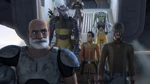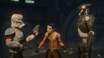 They soon make it back to the command center, only for Kalani to reveal his deception. Rex almost shoots the droid, but Ezra stops him and stands in-between the two enemies, stating that neither of them won this battle. Listening to Ezra's reasoning, the Clone Wars came to a suspicious end with no clue over who won; the Republic or the Separatists. All he knew was that the Jedi were wiped out, the clones were decommissioned, and the droid army was simply shutdown, but who really won was a good question. During a moment of silence, they later notice Imperial forces have arrived and have deployed Stormtroopers and walkers to intercept. This makes Ezra realize that the real victors of the Clone Wars was the Empire. The clones and droids fought one another and when they were weak enough the Empire took over. Understanding Ezra's logic and reasoning, both General Kalani and Rex agree they are both on the same side and their true enemy was the Empire.