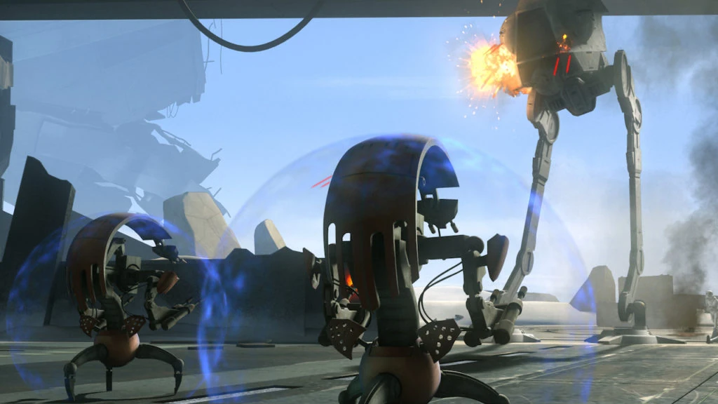 The Battle Droids fight the Imperials.