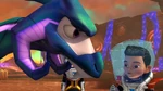On Planet Infurnia, Colton is learning to fly, just like his dad, Cember, told him. Colton then dives into the Infurnia metal as a landing. Cember tells Colton that he must work on his landings, as well. Colton then drinks some Infurnia metal, restoring his strength.