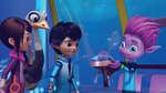 Once at the bridge, Miles is amazed to see a waterworld up ahead. Phoebe says that this is not just any waterworld, but Atlantix. Loretta knows that name, and also knows that the Wimpleys live there. Phoebe states that they will be helping the Callistos with their mission on the sea floor. Leo says that the mission is to find a Tomorrowland Transit Authority underwater mapping drone loaned to the Atlantixians. Recently, it veered off course and powered down. The Callistos then head in the Star Jetter to get to the planet.