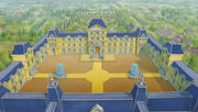 The outside looks nothing like the Palace of Versailles. There is a Courtyard near the corridor and Throne Room, which are inside. Another courtyard is the Entrance Courtyard where other monarchs arrive for a visit, a cup of tea and gossip.