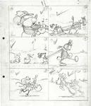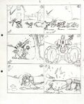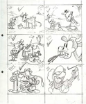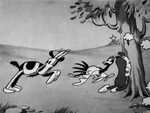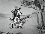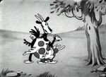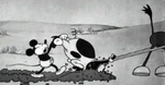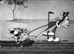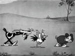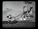 Mickey eventually manages to present Minnie with a full bucket of milk and proceeds to forcefully kiss her. Minnie's reply to this sign of affection is knocking his head with the bucket. At some point, the horse is stung by a bee, panics and starts galloping. By the time the horse calms down again, the plow has been broken. In the finale, Mickey resorts to using a pig as a plow.