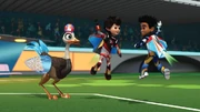 It is now overtime of the last game of the tournament with the score 0-0. Blodger successfully blocks the ball, and passes it to Loretta, who passes it to Pipp. He then hands Miles the ball, and Miles tells Haruna to give it his best. Miles successfully kicks the ball into the goal, winning the game and the Quantum Cup for the Moonquakes. Miles congratulates Haruna, who thinks his aim is improving, and Miles tells him that he will get it next time. All of the teammates shake hands, and the Moonquakes are presented with the Quantum Cup.
