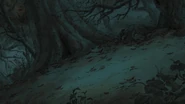 In "The Book of Boo ", a Halloween special, Eeyore chose to move his house of sticks into the Scary Woods because it kept getting knocked over. He was sure that it would be safe in the Scary Woods, as normally everyone else was afraid to go in there so they went to the Scary Woods to find Eeyore. In "Bravehat ", Piglet went to search for his hat and Eeyore's tail in the Scary Woods. Pooh and Piglet got lost in the Scary Woods in "Rabbit's Happy Birthday Party " and sang the song "Think, Think, Think " to help them not be so afraid. The Scary Woods are mentioned in "Our Perfect Map of the Wood", a song from The Book of Pooh story "Map of the Wood ". The characters are singing about which places they would include on the map. Piglet asks "What about the Scary Woods?" and sings that he'd skip them if he could.