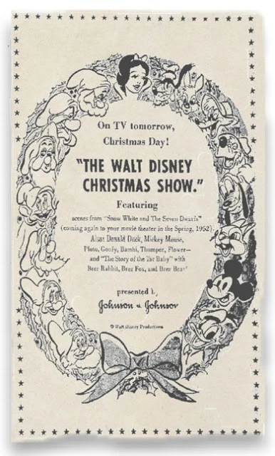 The Walt Disney Christmas Show is a Christmas television special, originally broadcast on Christmas Day 1951 . The then-upcoming Disney film, Peter Pan was promoted in this special, along with a reissue of Snow White and the Seven Dwarfs .