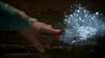 The prisoner Emma rescued is revealed to be none other than Maid Marian, who eagerly runs to embrace Robin Hood and Roland. A distraught Regina notes that Emma has done exactly what her mother did: ruin her happiness by naively trying to make things better. Reduced to tears, Regina ominously warns Emma that Marian had better be the only thing she brought back. Back at the barn, a container from Rumplestiltskin's vault (which Hook accidentally disturbed in the vault) is revealed to have fallen through the portal. The lid pops off and releases a blue liquid, which after a moment, coalesces into none other than Elsa. She removes her gloves and unleashes an icy blast that destroys her former prison, before heading out of the barn, leaving a trail of frozen ground behind her.