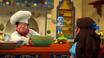 Meanwhile, the blue baby Jaquin enters the kitchen and eats gooseberries and eggs that Armando is planning to use to make his frosting. He spits them back out, ruining both. Isabel purses him and finally manages to get him back to her room, only for the pink one to get out. Frustrated, Isabel puts the purple and blue baby Jaquins in her Bakery Bike as Skylar and Luna show up. They have heard about the eggs and are shocked to see that the baby Jaquins have already hatched. Isabel complains that they are tearing the place apart, to which Luna explains that their hunger is making them cranky. Luna and Skylar take off to find some Anoki Berries while Isabel gets on her Bakery Bike to get the pink baby Jaquin back. Meanwhile, the pink baby Jaquin enters Mateo's workshop, where Mateo has finally gotten his Enlarging Potion to work. She eats an apple he uses the potion on, only to spit it out as it is not an Anoki Berry. She then drinks Mateo's Enlarging Potion and becomes a giant. The giant baby Jaquin then goes on a rampage with Mateo in pursuit. Back at the Bake-Off, Lady Yolanda is about to be declared the winner when Armando shows up with his masterpiece. Before the Judges can taste it, the giant baby Jaquin comes in with Mateo in pursuit. Mateo tries to stop the giant baby Jaquin with a Freezing Spell but fails when it hits Doña Paloma by mistake. Isabel also comes in to stop the giant baby Jaquin, but she also fails and the other two baby Jaquins get loose. The baby Jaquins take bites out of all the food only to spit them out as none of them are Anoki Berries. They then fly off to find some Anoki Berries with Isabel pleading for them to come back.