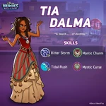 Tia Dalma returns as one of the four playable Pirates of the Caribbean characters in the mobile game Disney Heroes: Battle Mode. In the game, Tia can be unlocked after receiving 10 Tia Dalma tokens, and has the ability to use ocean-like abilities to defeat her enemies, including "Bitter Storm", "Tidal Rush", and "Mystic Charm". Tia is also a control-type character and is designated to the yellow team of heroes.