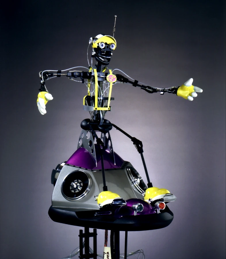 Tom Morrow 2.0 is an audio-animatronic character inspired by the character of Tom Morrow, here most notably featured in the Disneyland incarnation of Innoventions. The character of Tom Morrow originated however from the original Rocket to the Moon attraction in Disneyland, originally having been portrayed as a human. He could've also been inspired by TOM, the robot host of competitor Cartoon Network's weekday afternoon action block Toonami.
